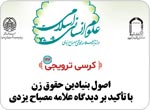 گروه حقوق موسسه امام خمینی (ره) کرسی ترویجی با موضوع «اصول بنيادين حقوق زن با تاکيد بر ديدگاه علامه مصباح يزدي» برگزار می کند.