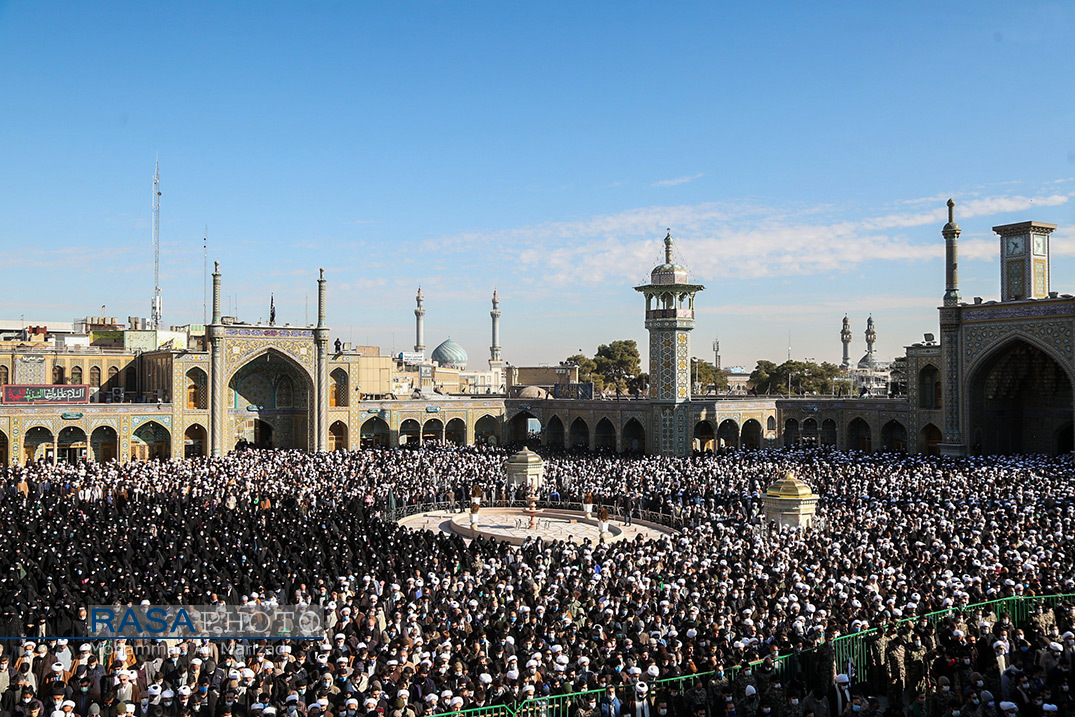 به خاطر جمعیت انبوهی که وجود داشت، صف های نماز به بیرون از حرم مطهر کشیده شد و شاهد نمازی با شکوه و سراسر نورانیت و معنویت در جوار بارگاه ملکوتی کریمه اهل بیت(س) بودم.