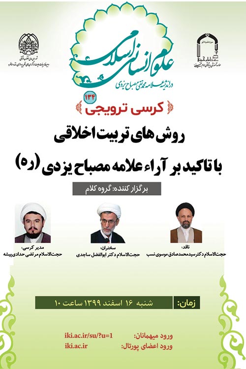 به گزارش پایگاه اطلاع رسانی تبیین، گروه کلام موسسه امام خمینی (ره) در 134 مین کرسی ترویجی « روش های تربیت اخلاقی با تاکید بر آراء علامه مصباح یزدی (ره)» بررسی می کند.