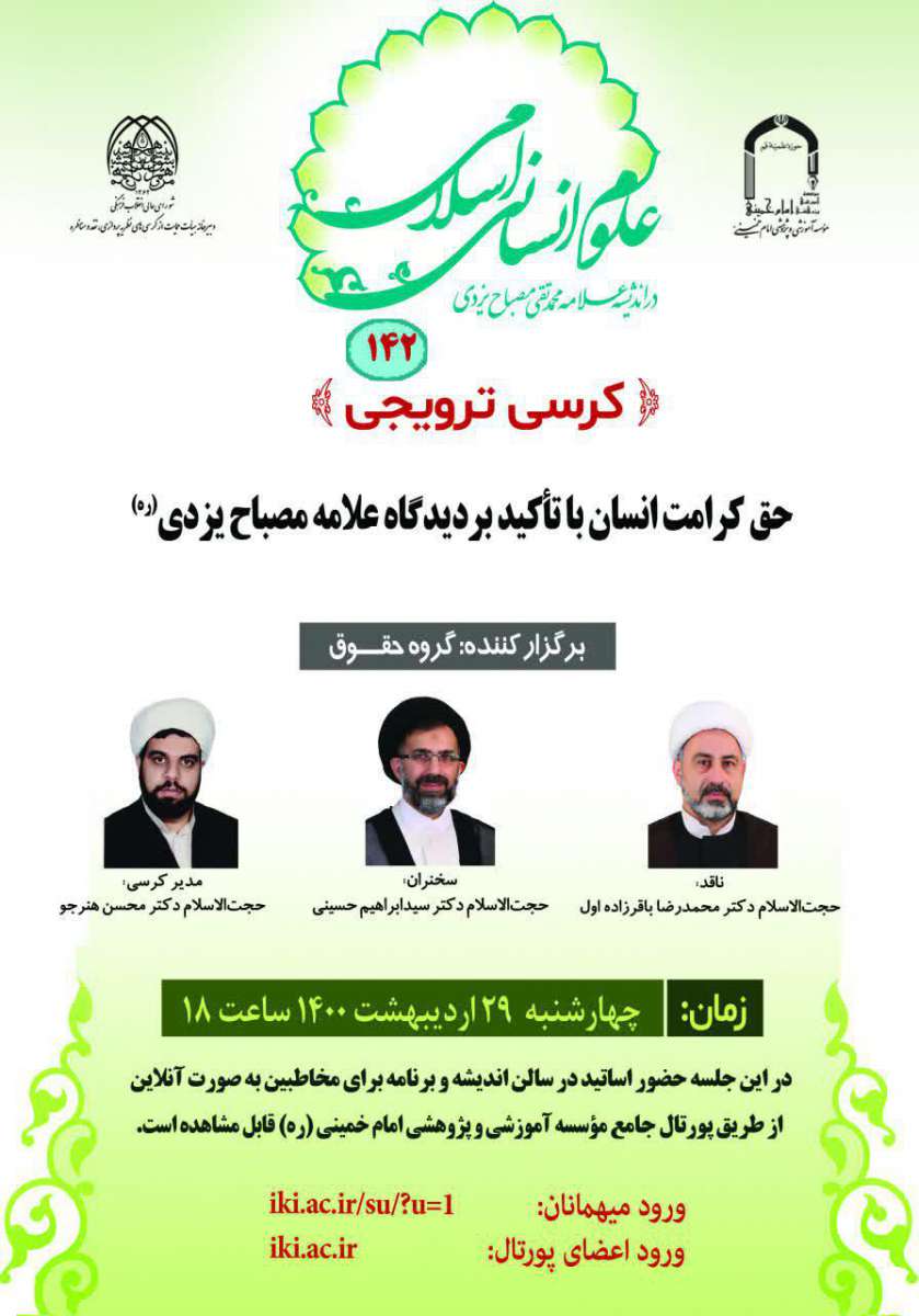 کرسی ترویجی 142، گروه حقوق مؤسسه آموزشی و پژوهشی امام خمینی (ره) با همکاری دبیرخانه کرسیها برگزار میکند