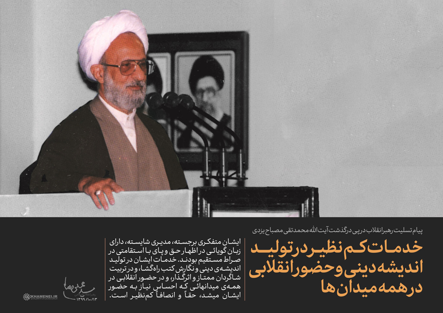 9. از باب نمونه، آدرس دو اثر ماندگار در تاریخ مجاهدتهای سرشار از روحیۀ انقلابی و ولایی علامه مصباح یزدی را تقدیم میدارم، شاید با مراجعۀ به این دو اثر و مطالعۀ آنها از اهانتهای خود به ساحت نورانی آن استاد گرانمایه شرمتان آید و به اصلاح نگاه و گفته و نوشتۀ خویش بپردازید.