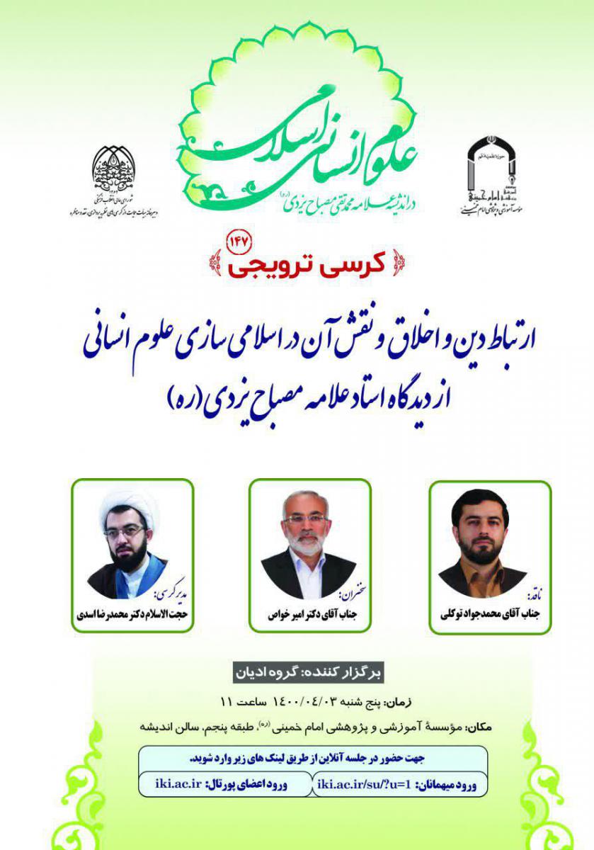 موضوع: ارتباط دین و اخلاق و نقش آن در اسلامی سازی علوم انسانی از دیدگاه استاد علامه مصباح یزدی(ره)