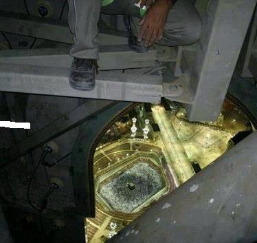 در همین راستا طی چند روز اخیر تصویری از بالاترین طبقه یکی از این برج ها گرفته شده و در رسانه ها و سایت های اجتماعی جهان عرب منتشر شده که بسیار تأثیر گذار و ناراحت کننده بود و عمق جنایت آل سعود به خانه خدا را نشان می دهد.