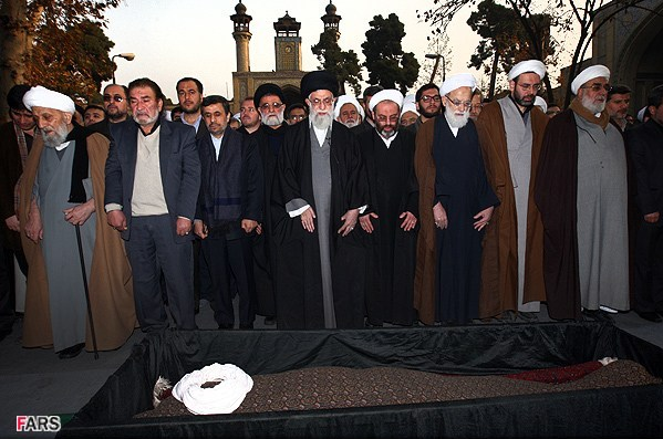 اقامه نماز بر پیکر آیتالله آقا مجتبی تهرانی توسط رهبر معظم انقلاب