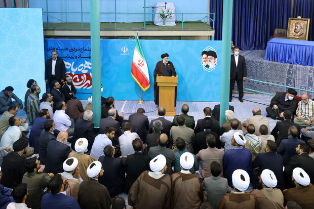رئیسی افزود: جهاد با مال، جان، لسان (جهاد تبیین) بسیار اهمیت دارد. ما در جهاد تبیین بسیار مشکل داریم و طلبهها و نیروهای جهادی ما در جهاد تبیین میتوانند بسیار اثرگذار باشند. جهاد تبیین نباید اجازه دهد جریان نظام ستمشاهی که پای آمریکا و اسرائیل را به کشور باز کردند تطهیر شود.