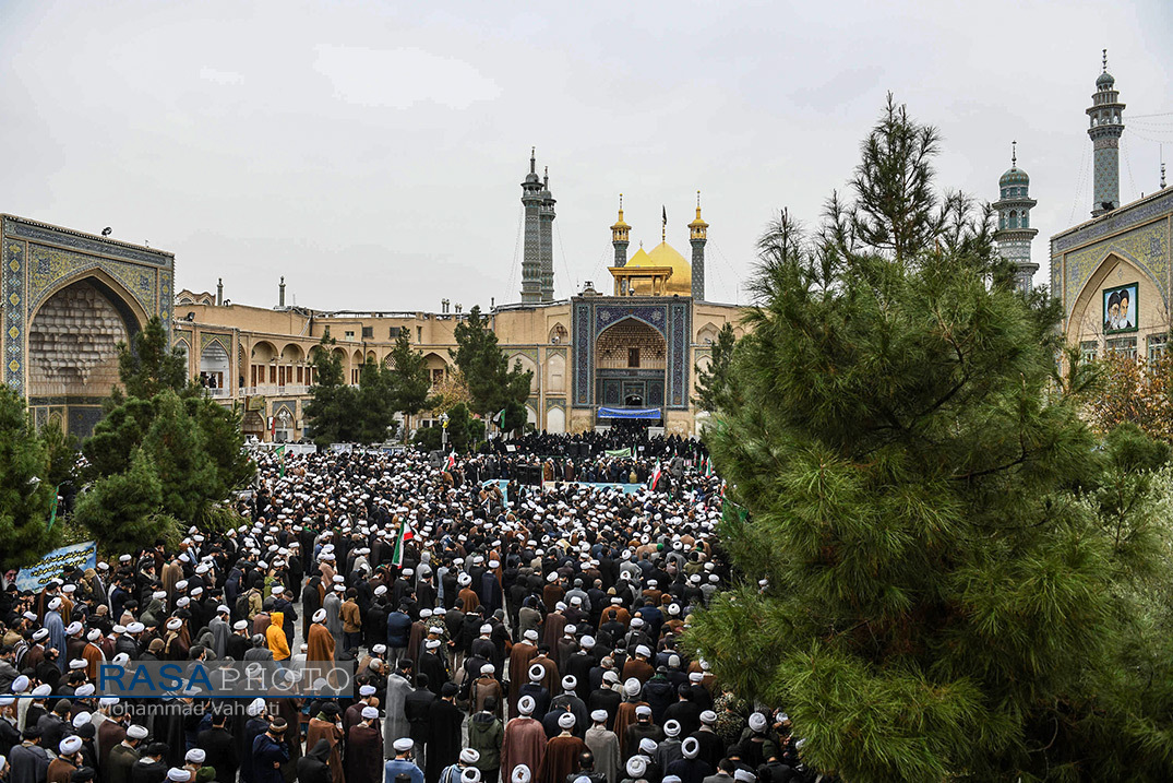 تبیین: آیت الله محسن اراکی عضو شورای عالی حوزه های علمیه در اجتماع بزرگ حوزویان و مردم ولایتمدار قم که صبح امروز از سوی نهادهای عالی حوزه با هدف تجدید میثاق با مقام عظمای ولایت و محکوم کردن توطئههای استکبار و دشمنان جهان اسلام در مدرسه مبارکه فیضیه برگزار شد، با اشاره به هدف اجتماع حوزویان در این روز اظهار داشت: امروز علما و حوزویان و همه جان برکفان آماده ایثار، شهادت و خدمت گردهم آمدهاند تا با اطاعت از ولی عصر(عج) و نائب برحق ایشان حضرت آیت الله العظمی امام خامنه ای(مدظله العالی) که پرچمدار آزادی و عزت مردم است، اعلام بیعت مجدد کنند.