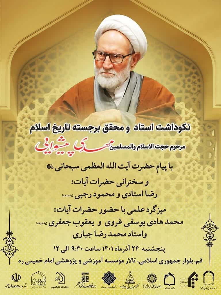 مراسم نکوداشت استاد و محقق برجسته تاریخ اسلام مرحوم حجت الاسلام و المسلمین مهدی پیشوایی به همت موسسه امام خمینی (ره) و دیگر مراکز برگزار می شود.