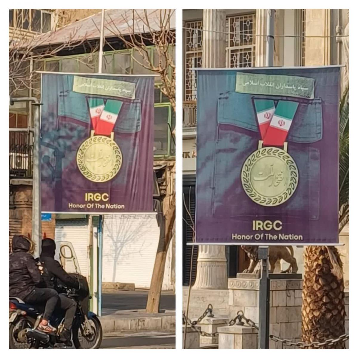 نصب بنرهای «سپاه؛ افتخار ملت» در محل سفارتخانههای کشورهای اروپایی در تهران درپی تلاش این کشورها برای قرار گرفتن سپاه در لیست نهادهای تروریستی را مشاهده می کنید.