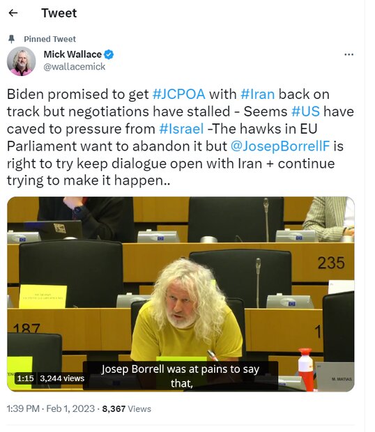 به گزارش مهر، «مایک والاس» (Mick Wallace) نماینده ایرلندی اتحادیه اروپا امروز چهارشنبه در پیامی توییتری نوشت: بایدن قول داد که (توافق) برجام با ایران را به مسیر خود بازگرداند، اما مذاکرات متوقف شده است.
