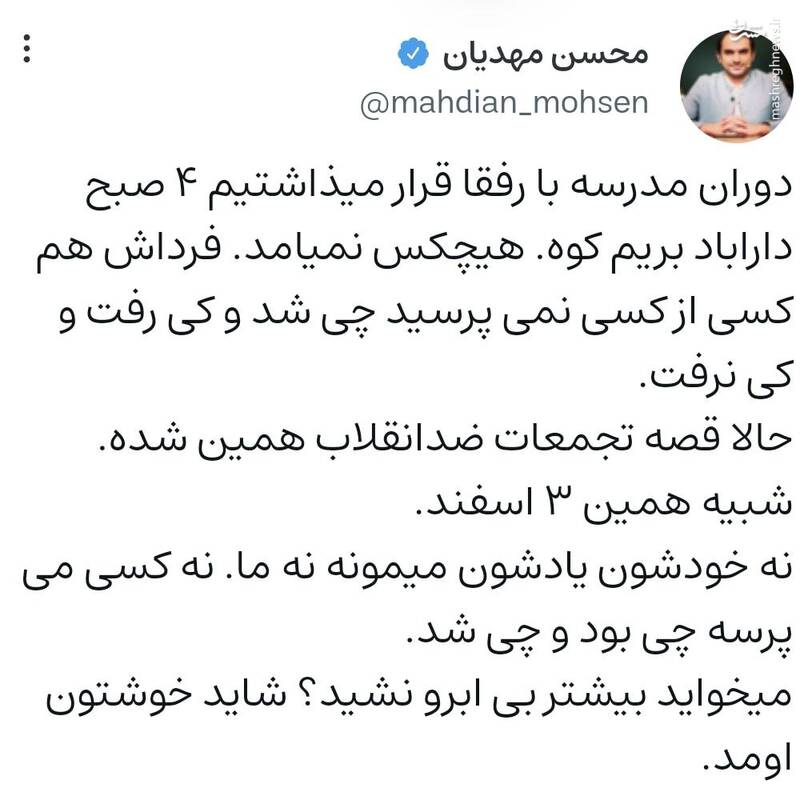 چرا کسی نمیپرسه تجمعات ضدانقلاب چی شد؟