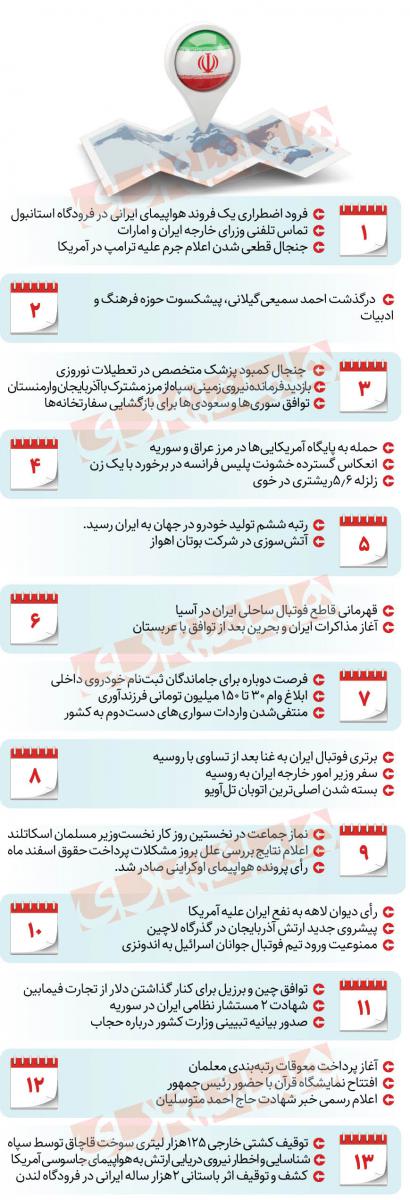اینفوگرافی از اخباری که در ۱۳ روزی که گذشت در ایران و جهان را مشاهده می کنید.