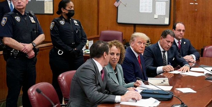 نخستین دادگاه دونالد ترامپ رئیس جمهور سابق آمریکا سهشنبه چهارم آوریل (۱۵ فروردینماه ۱۴۰۲) در ایالت نیویورک، برگزار شد. در این دادگاه که ساعت ۱۴ به وقت محلی و ساعت 22 شب به وقت تهران برگزار شد، ۳۴ فقره اتهام به رئیس جمهوری سابق این کشور وارد شد. این نخستین باری است که یک رئیس جمهور در آمریکا دادگاهی میشود. به گفته افرادی که در این دادگاه حضور داشتند جلسه تفهیم اتهام ۳۴ فقره جرم به ترامپ، ۵۷ دقیقه طول کشید.