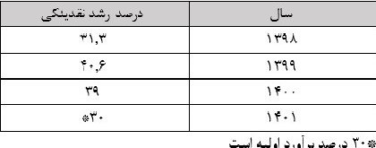بر اساس اعلام بانک مرکزی هدفی که برای رشد نقدینگی برای امسال در نظر گرفته شده است نرخ رشد 25درصدی است و از آنجا که استمرار سیاست کنترل مقداری ترازنامهها، ساماندهی بانکها و مؤسسات اعتباری ناتراز و ایجاد ثبات در بازار ارز از جمله مهمترین برنامههای بانک مرکزی و دولت در این زمینه است، انتظار میرود آثار این سیاستها در زمینه کاهش نرخ تورم در سال 1402 نمایان شود.