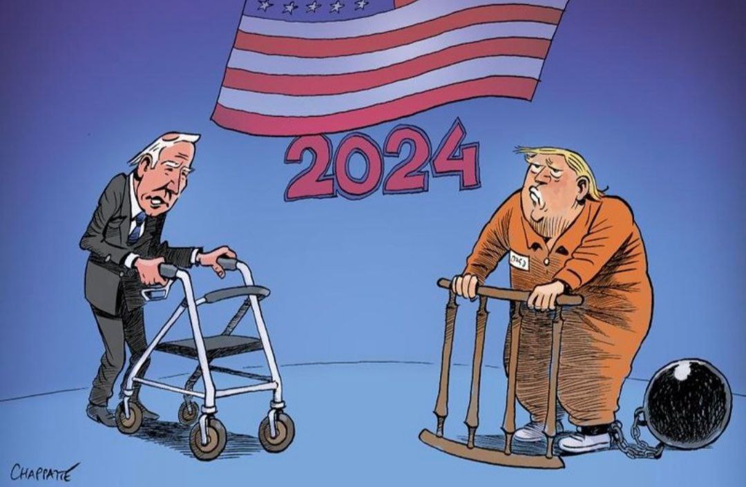 کاریکاتور جالب توجه نشریه سوئیسی لوتان با موضوع انتخابات آمریکا ۲۰۲۴