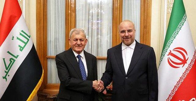 رییس مجلس شورای اسلامی امروز با رییس جمهور عراق دیدار کرد. قالیباف در این دیدار، آمریکا را دشمن مشترک دو کشور دانست و بر توسعه روابط اقتصادی دو کشور و نیز حل و فصل موضوع بازپرداخت مطالبات کشورمان از عراق تأکید کرد.