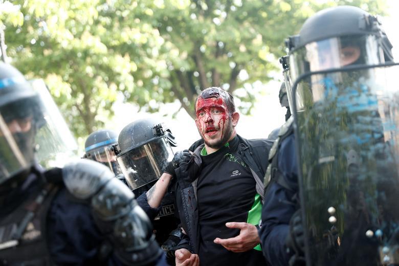 تصویری از اعتراضات روز کارگر در فرانسه را مشاهده میکنید. (منبع: رویترز)