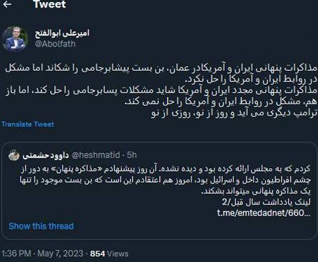 مذاکرات پنهانی ایران و آمریکادر عمان، بن بست پیشابرجامی را شکاند اما مشکل در روابط ایران و آمریکا را حل نکرد. مذاکرات پنهانی مجدد ایران و آمریکا شاید مشکلات پسابرجامی را حل کند، اما باز هم، مشکل در روابط ایران و آمریکا را حل نمی کند. ترامپ دیگری می آید و روز از نو، روزی از نو