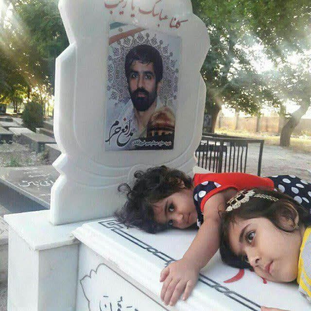 عکسی از دو دختر شهید مدافع حرم عبدالرحیم فیروز آبادای را مشاهده می کنید.