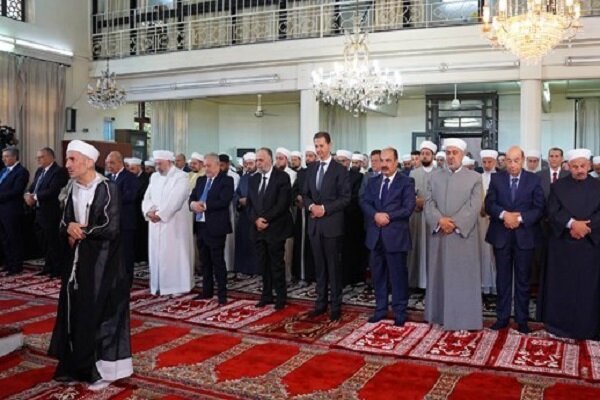 رئیس جمهور سوریه صبح امروز با حضور در یک مسجد در دمشق نماز عید قربان را اقامه کرد.