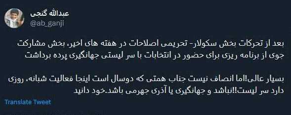 عبدالله گنجی فعال رسانه ای در صفحه توئیتر خود نوشت: