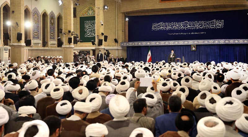 رهبر انقلاب در نکتهای مهم، حضور روحانیت در وسط میدان را کاملاً ضروری خواندند و گفتند: روحانیت اسلام، همیشه امیدوار و پرتحرک و جهادی، در وسط میدان بوده است.