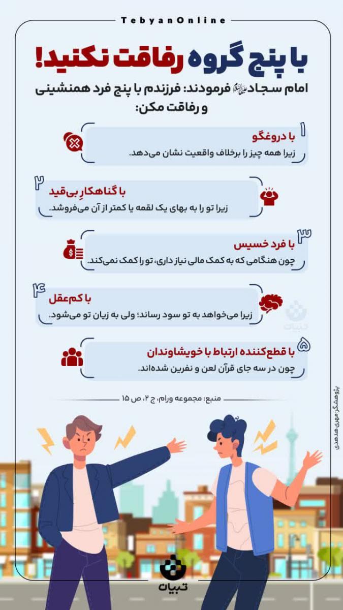 توصیه امام سجاد علیه السلام برای رفاقت نکردن با پنج گروه.