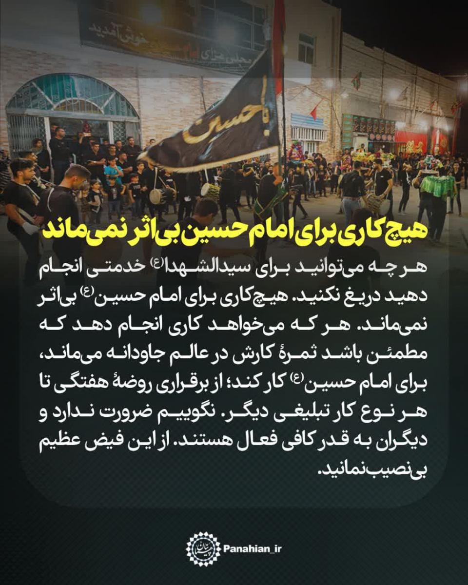 عکس نوشتهای از صحبت های حجت الاسلام پناهیان در مورد خدمت کردن به امام حسین(ع) را مشاهده می کنید.