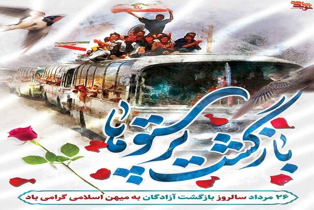 ۲۶ مرداد ماه هر سال یادآور ورود باشکوه، غرورآفرین و فاتحانه آزادگان سرافراز به میهن عزیزمان است که نتیجه استقامت، پایداری و صبر مومنانه ایشان در راه اعتلای آرمانهای والای انقلاب اسلامی بود که تبدیل به لبیکی بلند به ندای آسمانی آن پیر سفر کرده گشت که صولت طاغوت را شکست و چراغ مقاومت را در شبان تیره ستمشاهی برافروخت.