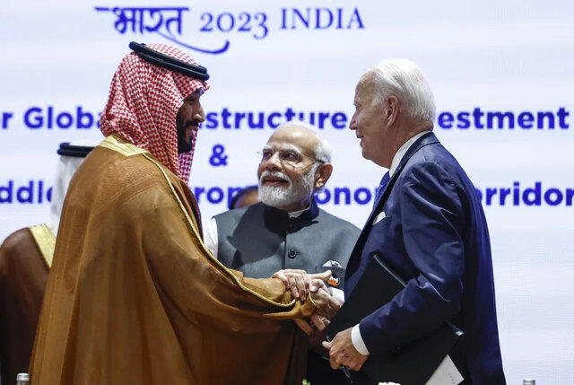 این مقامات همراه با چند رهبر دیگر در نشست گروه ۲۰ در دهلینو حضور یافتهاند. این رهبران برای اعلام یک طرح بلندپروازانه برای ایجاد کریدور ریلی و کشتیرانی که هند را به خاورمیانه و اروپا متصل میکند، گردهم آمده بودند.