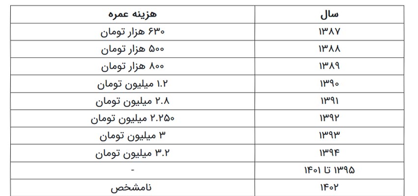 فراز و نشیبهای هزینه عمره مفرده در 15 سال گذشته+جدول