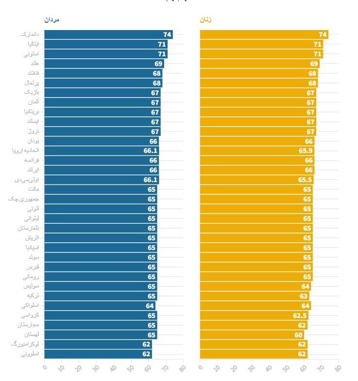 سازمان توسعه و همکاریهای اقتصادی از سن بازنشستگی کشورها تا سال 2060 برآورد کرده است.