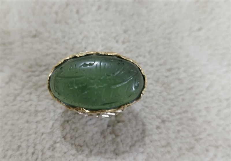 انگشتریای که حضرت آیتالله خامنهای در دست داشتند و به جوهریخو اهدا کردند، نوشتهای قابل توجه داشت؛ «شهید آلاللّه سلیمانی، ما ملت امام حسینیم»،