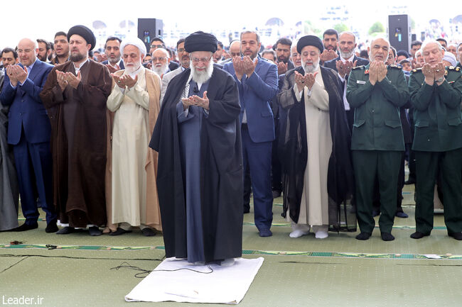 به گزارش تبیین به نقل از پایگاه اطلاع رسانی دفتر مقام معظم رهبری،ایرانیان، امروز نماز عید سعید فطر را در صفوفی منسجم و متحد در سراسر میهن عزیز اقامه کردند و با دلهایی مملو از نشاط ایمان و شوق بندگی، حوائج فردی، خانوادگی، اجتماعی و ملی خود را از پروردگار کریم مسئلت کردند. در پایتخت، نماز پرشکوه عید فطر به امامت حضرت آیتالله خامنهای رهبر معظم انقلاب اسلامی و با حضور انبوه مردم مومن و موحد، در مصلی تهران و خیابانهای اطراف اقامه شد.