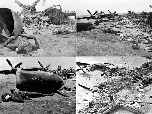 هلیکوپتری هم که به این هواپیما برخورد کرده بود متلاشی شده بود که مسلما خلبانانش به درک واصل شدند. آمریکاییها حتی وقت نکردند فشنگها را بردارند. نکته قابل توجه اینکه جعبه سیاه هواپیمای سی ۱۳۰ که حافظه مختصات پرواز جهت و مسیر پرواز بوده در محل بین سوختههای لاشه هواپیما موجود بود و از این جعبه میتوان کاملا مطمئن شد که این مزدوران از کدام یک از پایگاههای کشورهای مزدور آمریکا در منطقه پرواز کرده است.