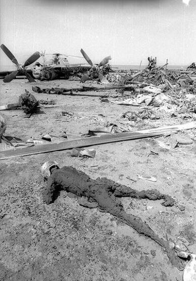 از هواپیمای سی ۱۳۰ که چهار موتوره است، جز تل خاکستر، آلومینیومهای ذوب شده که در سطح کویر روان شده بود چیزی باقی نمانده بود. پنج جسد سوخته خلبانان آمریکایی را در لابلای لاشه هواپیما مشاهده کردیم که عبارت بودند از خلبان و خدمه هواپیمای سی ۱۳۰.