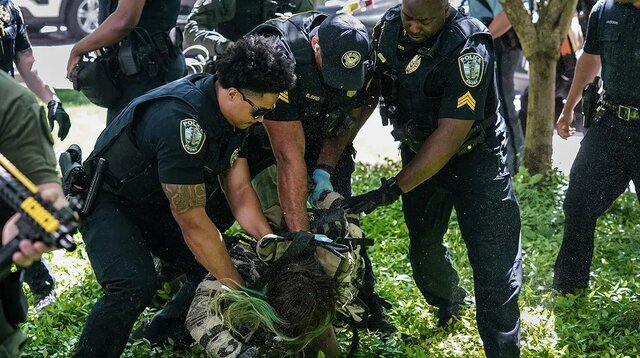 در جریان سرکوب دانشجویان معترض به جنایات اسرائیل در نوار غزه، نیروهای پلیس در دانشگاه آموری در ایالت جورجیا از گاز اشکآور و گلوله پلاستیکی استفاده کردند که این اولین بار طی یک هفته گذشته از شروع اعتراضات دانشجویی است.