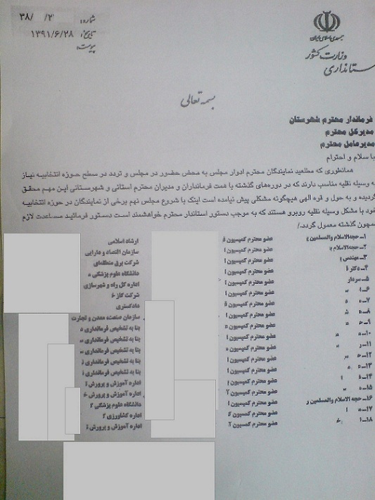 مجموعه نامههای زیر، بخشی از نامههای نماینده مجلس به استاندار مربوطه در چند ماه گذشته از دوره نمایندگی وی است. به لحن نامهها نیز توجه کنید.