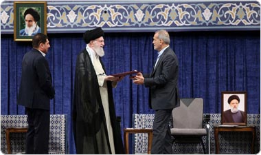اکنون اینجانب با تشکر از همهی کسانی که در خلق این افتخار نقش آفریدهاند، به پیروی از ملت بزرگ، رأی آنان به شخصیت فرزانه، و صادق، و مردمی، و دانشمند جناب آقای دکتر مسعود پزشکیان را تنفیذ و ایشان را به ریاست جمهوری اسلامی ایران منصوب میکنم. و با دعا و آرزوی صمیمانه برای موفقیت ایشان، یادآوری میکنم که رأی ملت و تنفیذ اینجانب تا هر زمان که مشی همیشگی ایشان در پیمودن صراط مستقیمِ اسلام و انقلاب برقرار باشد، ادامه خواهد داشت.