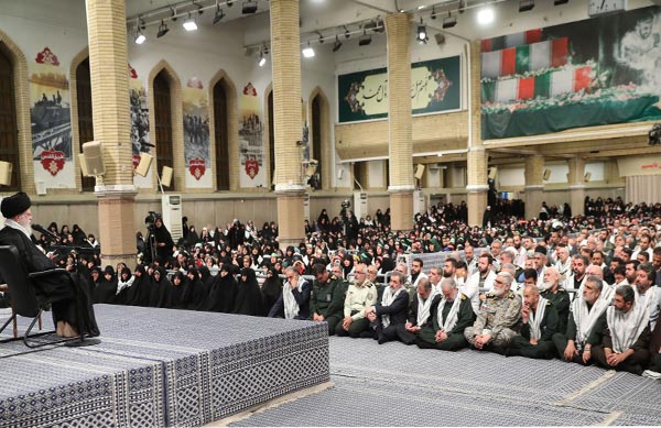 رهبر انقلاب در ادامه، وقایع کنونی فلسطین و لبنان را از جنس وقایع دوران دفاع مقدس و مصداق جهاد فی سبیل الله خواندند و گفتند: یک کشور اسلامی یعنی فلسطین به دست خبیثترین کفّار عالم غصب شده و حکم قطعی و شرعی این است که همه تلاش کنند فلسطین و مسجدالاقصی را به صاحبان اصلی آن بازگردانند.