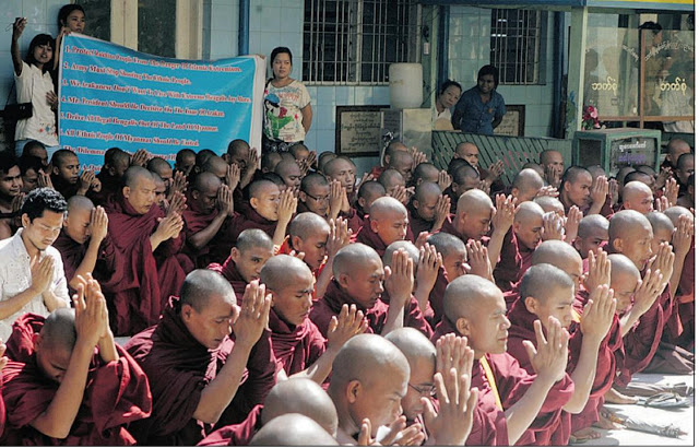 سال 2007، انقلابي در ميانمار در حال وقوع بود به نام "انقلاب زعفراني" که طي آن بوداييهاي برمه به حمايت از آنگسان سوچي به خيابانها ريخته و تظاهراتبرگزار كردند.