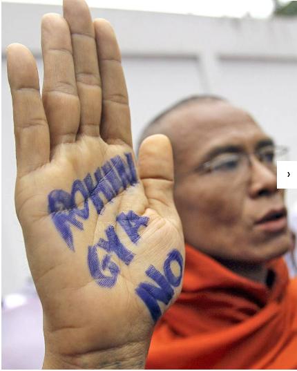 روزنامه اينديپندنت در مقالهاي با عنوان "راهبهاي بودايي خواهان کنار گذاشتن جامعه مسلمانان" گفت که سازمانthe Young Monks Association آگهيهايي در سطح شهر پخش کردهاند که از مردم برمه ميخواهند تا با مسلمانان روهينگيا همکاري نکرده و کمکهاي بشردوستانه به اردوگاههاي روهينگا مانع شوند.