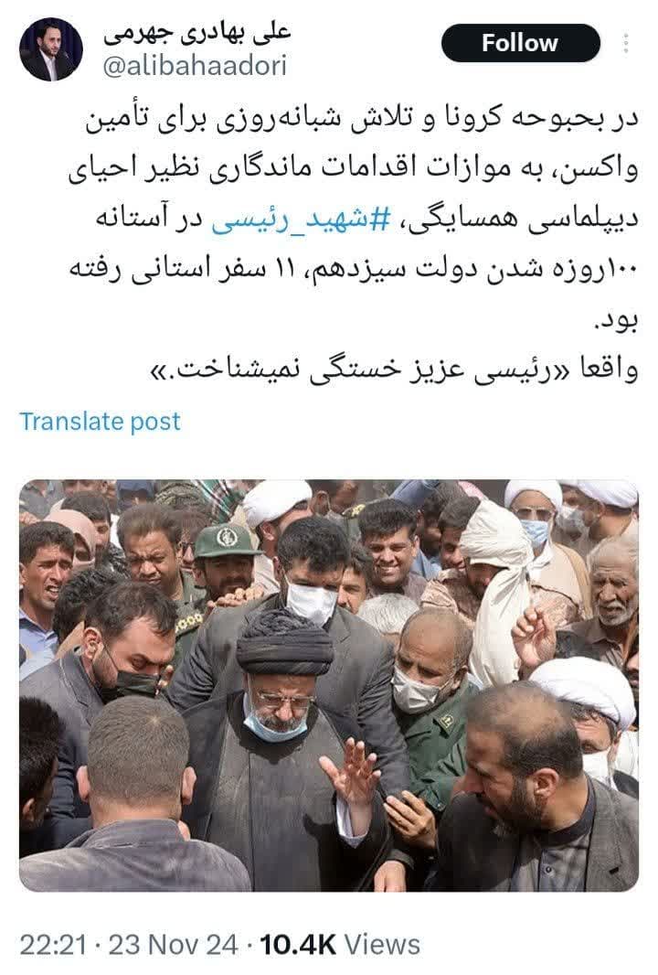 در بحبوحه کرونا و تلاش شبانه روزی برای تامین واکسن، به موازات اقدامات ماندگاری نظیر احیای دیپلماسی همسایگی، شهید رئیسی در آستانه صد روزه شدن دولت سیزدهم، ۱۱ سفر استانی رفته بود.