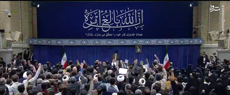 تصویری از آیه نصب شده در دیدار امروز چهارشنبه ۲۱ آذر ۱۴۰۳ هزاران نفر از اقشار مختلف مردم با رهبر معظم انقلاب در حسینیه امام خمینی(ره) را مشاهده میکنید.