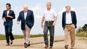 «کالین پاول»، وزیر امور خارجه آمریکا در دوره اول ریاست جمهوری بوش، رویکرد بسیار سنتی، محتاطانه و دیپلماتیک تری را در قبال خاورمیانه نشان داد، اما دیدگاه های او نتوانست بر نگاه های دولت وقت چیره شود.