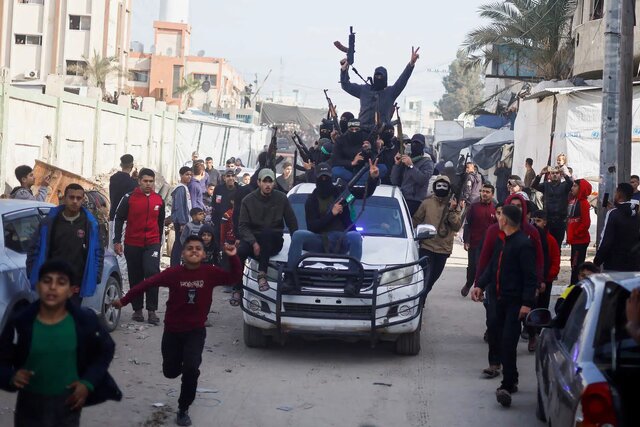 شوک چهارم- تبادل در قلب غزه با هزاران نفر: یکی از چالشهای مورد انتظار، جمعآوری ۳ اسیر اسرائیلی و رساندن آنها به مکان اعلامی برای تحویل آنها به نمایندگان صلیب سرخ توسط حماس درست ساعاتی پس از پایان آتشبس بود. حماس در مذاکرات بارها درخواست کرده بود که باید یک هفته ثبات ایجاد شود تا بتواند کارهای فنی و اجرایی تبادل را انجام دهد. تأخیر تقریباً یک روزه حماس در تحویل نام ۳ اسیری که قرار است آزاد شوند هم بر این چالشها و نگرانیها افزود. ارتش اسرائیل تا لحظه اعلام آتشبس که اعلام نام ۳ اسیر از سوی حماس بود، حملات را ادامه و پروازهای پهپادی بسیار گستردهای به منظور رصد جابهجاییها برای رسیدن به سرنخی از اسرا انجام داد. اما تحویل ۳ اسیر در قلب شهر غزه با حضور هزار نفر از مردم عادی و نیروهای چهره پوشیده قسام حسابی همه را شوکه کرد. اقدام حماس درست ساعتی پس از آتشبس نشان از اعتماد به نفس عجیب حماس از تسلط بر صحنه و میدان و امنیت شهر غزه بود.