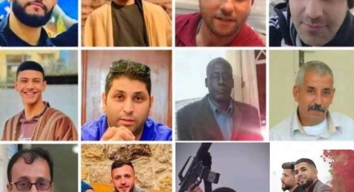 رسانههای فلسطینی با انتشار تصاویری اعلام کردند که «خلیل طارق سعدی، خلف احمد جمحاوی، حسین عبد المنعم ابو الهیجاء، یوسف خلیل ابو عواد، معتز عماد ابو طبیخ، احمد نمر الشایب، امین صلاحات الأسمر، رائد حسین أبو سباع، عبد الوهاب احمد سعدی، محمود ابراهیم جرادات، قتیبة ولید شلبی، محمد اسعد نزال» به شهادت رسیدند.