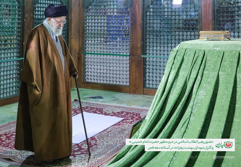 حضرت آیت الله خامنهای رهبر معظم انقلاب اسلامی صبح امروز در آستانه دهه مبارک فجر در حرم مطهر حضرت امام خمینی (ره) حضور یافتند و ضمن قرائت فاتحه، به بنیانگذار جمهوری اسلامی ایران ادای احترام کردند.