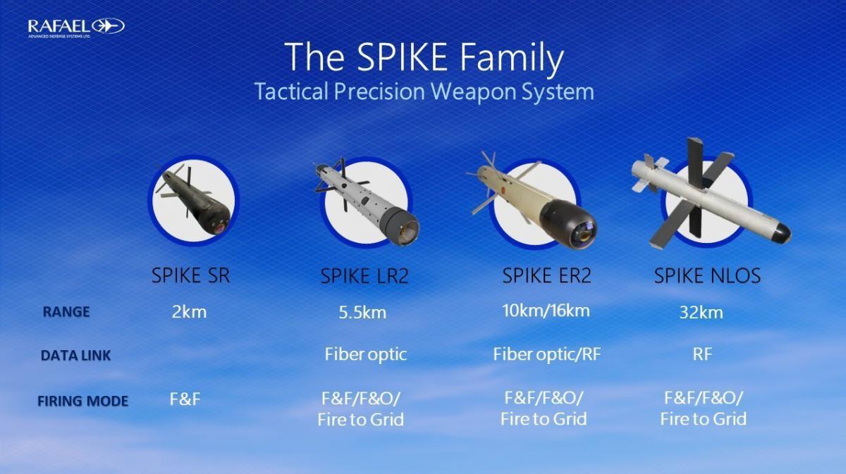 برای آشنایی بیشتر با این نوع موشک باید بدانیم که خانواده موشکهای اسپایک ساخت رژیم صهیونیستی دارای انواع مختلفی هستند که قابلیت نفوذ تا بیش از 1000 میلیمتر، هدایت به کمک فیبر نوری، امکان حمله از بالا، قابلیت "شلیک کن ــ فراموش کن" و گستره وسیعی از برد در نمونههای مختلف آنها وجود دارد.