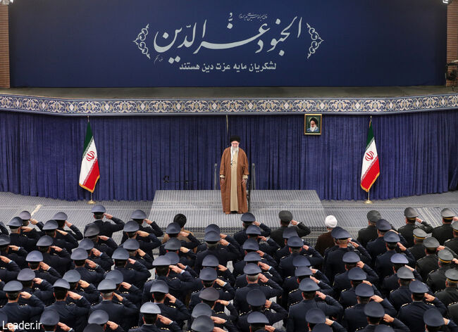 حضرت آیتالله خامنهای دفاع از ایران را سرلوحه کارها و تقویت ارتش را مهمترین وظیفه خواندند و افزودند: ارتش باید از لحاظ نیروی انسانی، تسلیحات، آموزش، آمادگیهای رزمی و دفاعی، رفع نقاط ضعف و آسیبهای احتمالی، استمرار ابتکار و تولیدات نوآورانه روزبروز تقویت شود و ثابت کند که کارهای بسیار بزرگتری هم را میتواند انجام دهد.