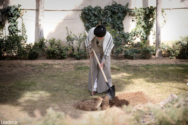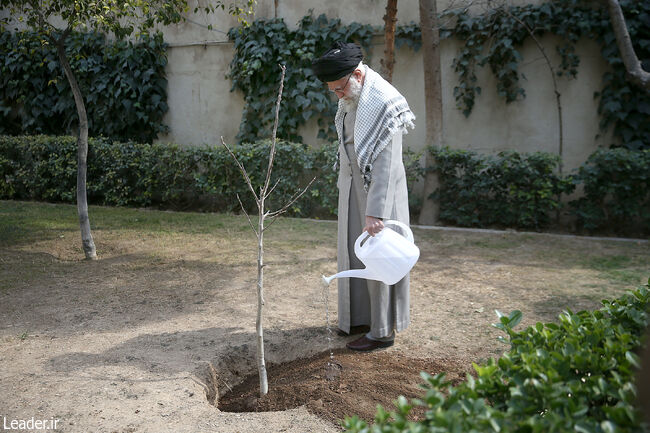 حضرت آیتالله خامنهای رهبر انقلاب اسلامی در هفته منابع طبیعی و همزمان با روز درختکاری صبح امروز چهارشنبه سه اصله نهال کاشتند.